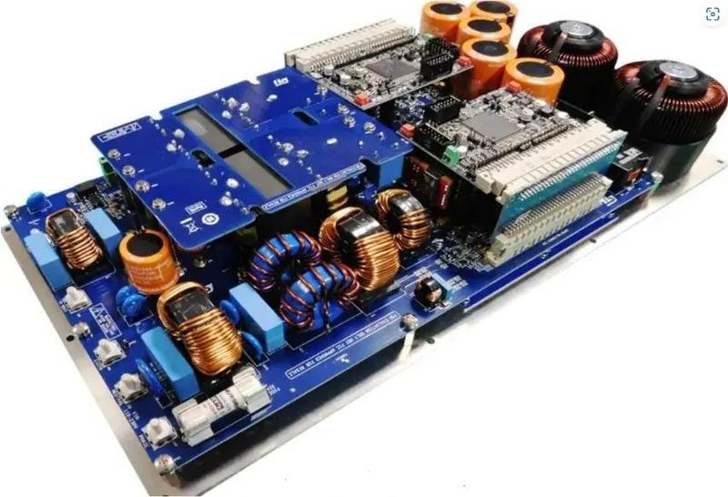 此方案的电源平台是一个7KW模组,能够在输出端提供恒流(CC)或恒压(CV)。值得一提的是,铝基板上的下层绝缘金属基板(IMS)极大地提高了散热效率,支持强制空气或液体冷却方式。每个分系统模块之间的设计允许通过导线轻松实现母线连接,从而简化了设计流程。此外,方案还采用了SiC MOS/Diode,这使得系统能够实现高输出功率和更高的功率密度。