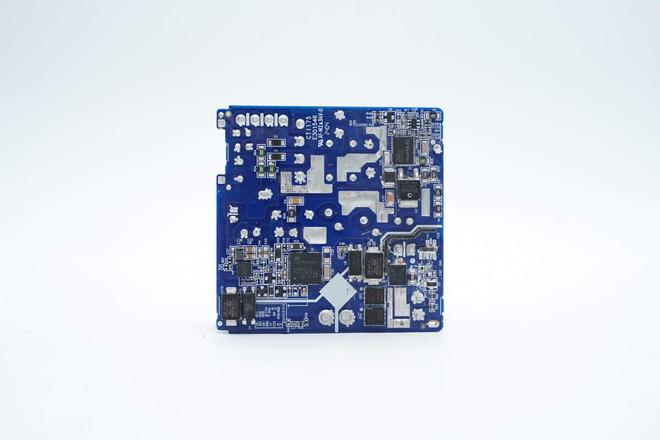 PCBA模块背面一览,k8凯发天生赢家一触即发右上角焊接PFC控制器,PFC开关管和PFC整流管。左下角焊接AHB控制器和半桥氮化镓芯片,以及贴片Y电容和反馈光耦。右下角焊接同步整流控制器和同步整流管,贴片Y电容和反馈光耦,VBUS开关管,另一面焊接协议芯片。