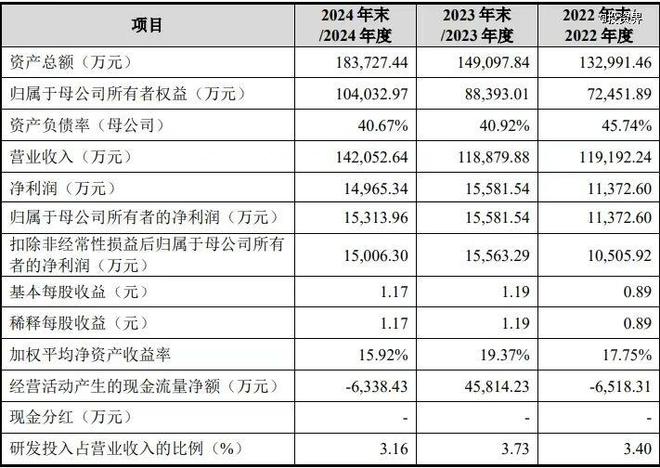 但需要注意的是,华新精科也出现了“增收不增利”的现象。招股书显示,2022至2024年,华新精科实现营收分别约为11.92亿元、11.89亿元、14.21亿元;归属净利润分别约为1.14亿元、1.56亿元、1.53亿元。其中,2024年营收增长19.51%,净利润增速却为-1.92%。