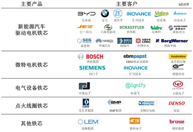 招股书介绍,精密冲压铁芯是华新精科的主要产品,可分为新能源汽车驱动电机铁芯、微特电机铁芯、电气设备铁芯、点火线圈铁芯等多种类型;同时,还会向客户提供生产铁芯产品所需的精密冲压模具。