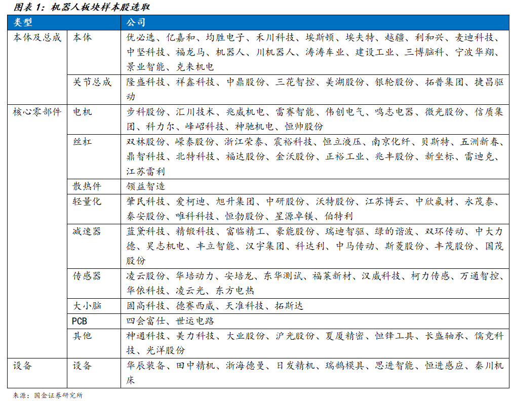 我们从机器人本体及总成、核心零部件、设备厂商中选取了120家机器人业务贡献占比较高或与机器人产业链关系紧密的重点公司进行分析。